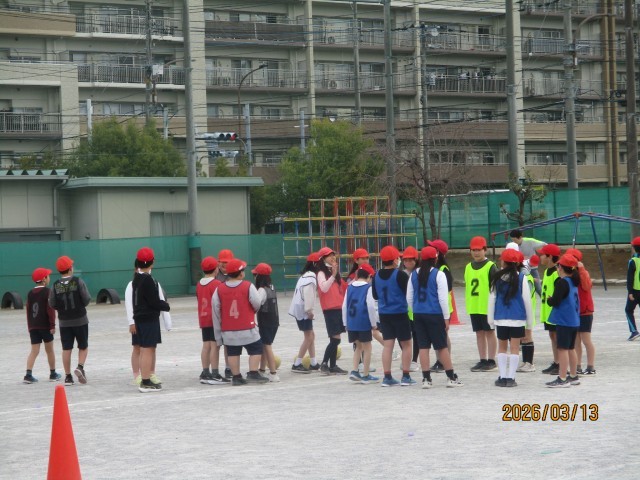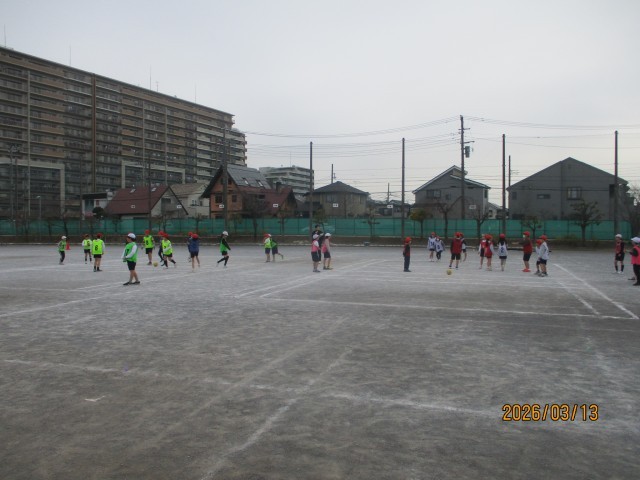1・2組 サッカー型ゲーム 寒い中でも元気に活動できました。