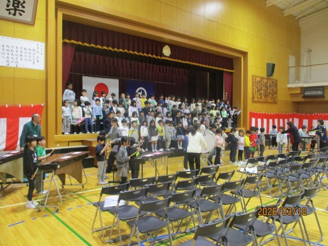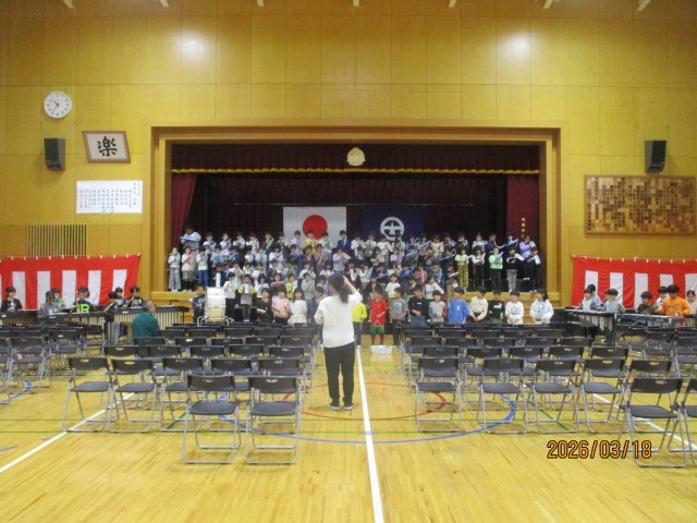 今日は、昨日の3時間目に現1年生が入学式で、新しい1年生にプレゼントする合奏の練習の様子をお伝えします。