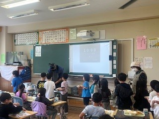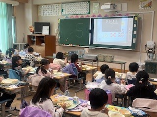 今日から1年生の給食が始まりました。6年生のお姉さん、お兄さんたちも手伝いに来てスムーズに準備をすることができました。小学校で初めての給食、多くの子がおかわりに行くほどよく食べていました。明日からの給食も楽しみですね。