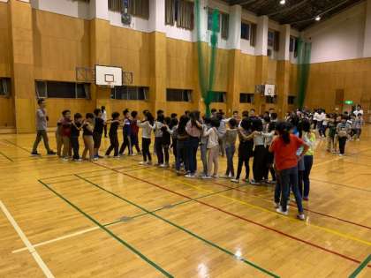 ジャンケン列車をしたり、ボール送りゲームをしたり…。