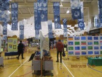 いつも見慣れている景色を、同じプラスチック素材のたまごパックやペットボトル、カップなどを使って、「がおかランド」に変身させるというものです。光を感じられる「キラりん」や風を生かした「ゆらりん」を中心に、どこに何をどうやって飾ろうか?子ども達のイメージはふくらみます。