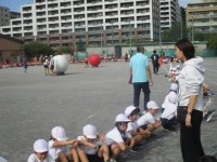 今日は運動会に向けての全校練習②の様子をお伝えします。今日は、全校競技の「大玉送...