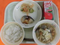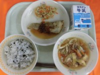 ごはん魚の梅焼きキャベツと青梗菜のごまあえ野菜のみそ汁牛乳