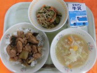 わかめごはん魚の南蛮漬け沢煮椀白菜とえのきのおひたし牛乳