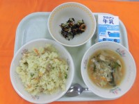 カレーピラフ青大豆とひじきのサラダABCスープ牛乳