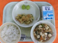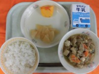 ごはん豆腐のうま煮パリパリサラダシャインマスカット牛乳