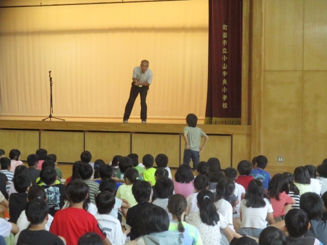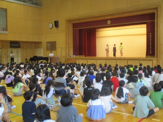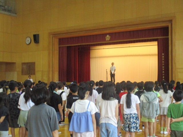 5年生代表児童の後期に頑張りたいことの発表がありました。 全児童が真剣に話を聞いていました。