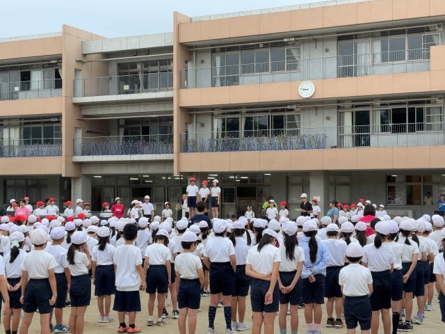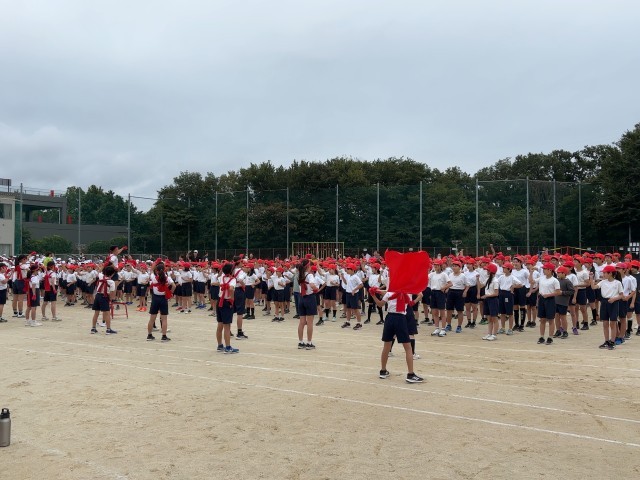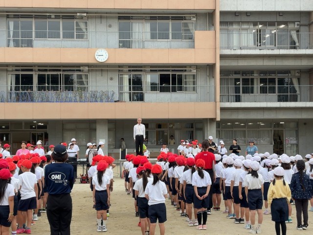 来週末の運動会に向けて、第1回の全校練習を行いました。