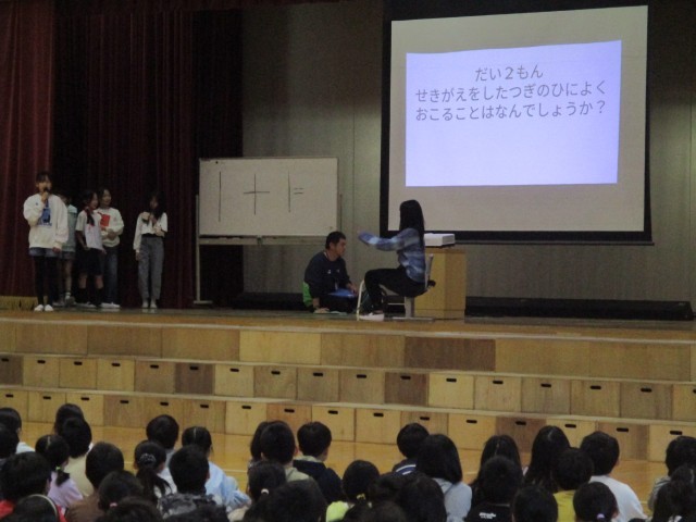 ゲーム集会 公開日 2025/12/03 更新日 2025/11/27 お知らせ 集会委員会によるゲーム集会が行われました。せんせいあるあるの紹介や「がっこうあるあるクイズ」5問に全校児童が取り組みました。楽しみながらクイズに答えていました。 +1