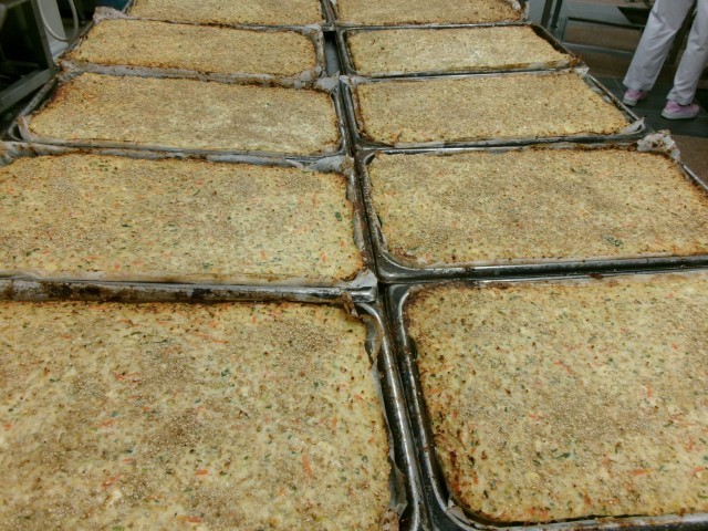 今月の食育の日は、お正月料理を作りました。「松風焼き」の「松風」は、能の「松風」というお話に由来しているそうです。松風焼きは表面にごまがついていますが、裏にはごまがついていません。その「裏が無い」が「かくし事がなく、正直な様子」を表し、今年一年、悪い事をせず、まっすぐに生きましょうという願いが込められています。「けの汁」は、青森県津軽地方の郷土料理で、小正月に作り置きする保存食でもあるそうです。今日はお正月料理をみんなでおいしくいただきましょうと、おはなししました。