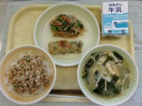 今日のトマトシチューは、町田産のトマトで作ったトマトピューレを使って作りました。トマトは、町田市で収穫される野菜で2番目に多い野菜です。町田市では、今年、収穫量の多いトマトを手軽に給食でも使えるようにトマトピューレに加工しました。加工されるトマトは、傷があったり、形が悪くお店に出せないようなトマトも使えるので、食品ロスを減らすことにもつながっています。