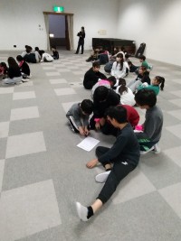 スキー開校式とスキーレッスンの様子です。開校式で挨拶などをした後、10班に分かれレッスンを受けています。気持ちのよい天気で寒くないため練習に励み上達しています。