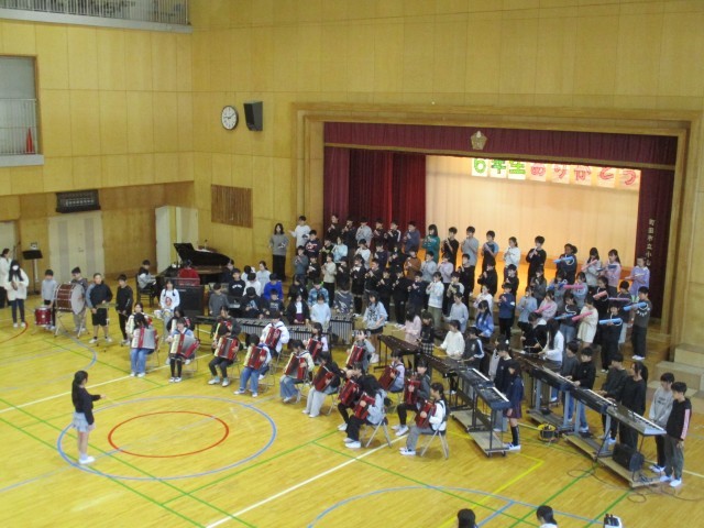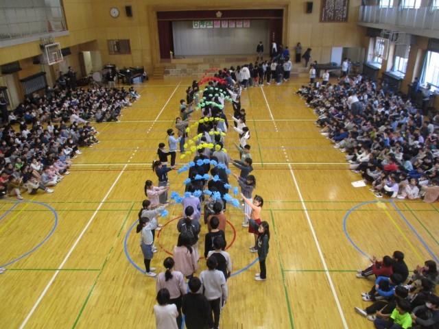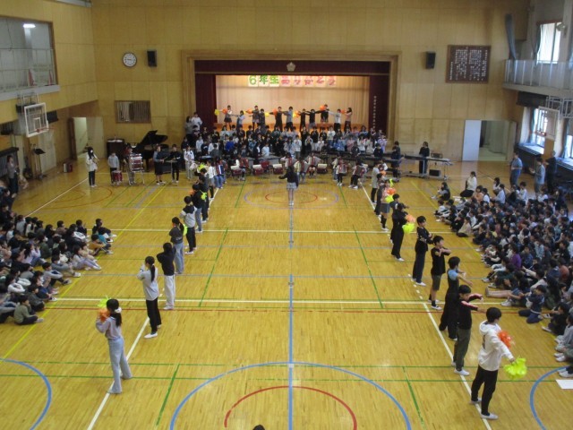 1年生から5年生が6年生に感謝の気持ちを歌などで発表しました。