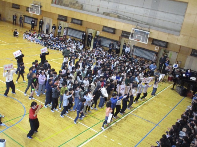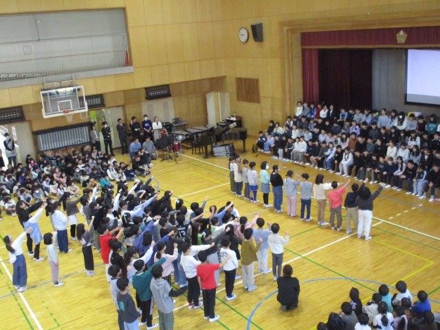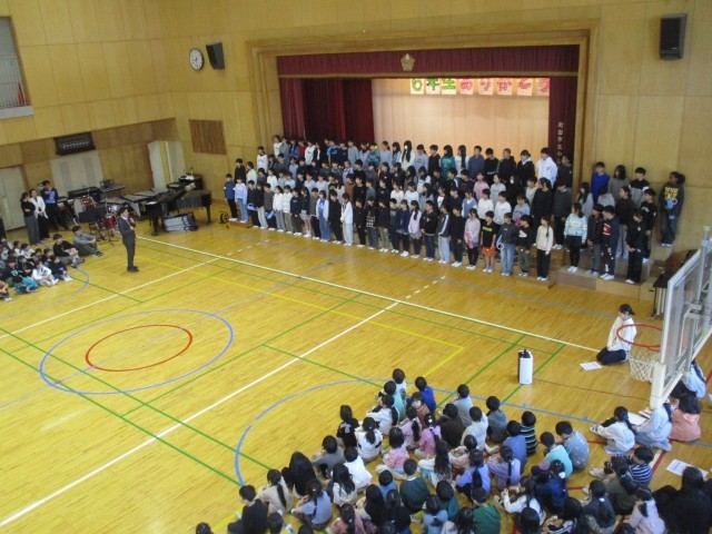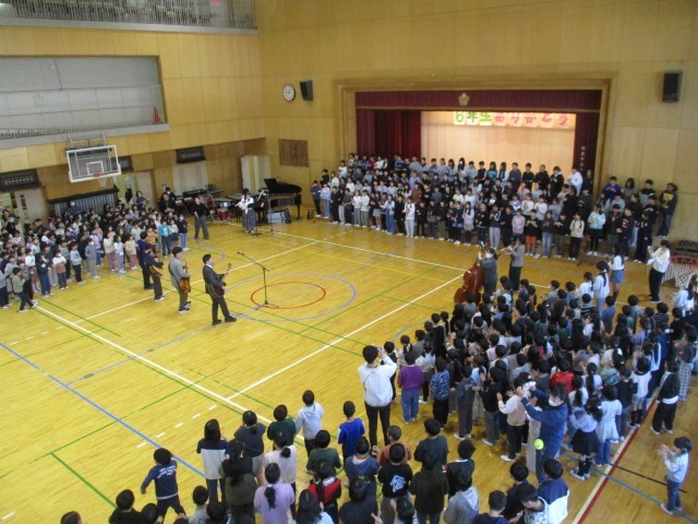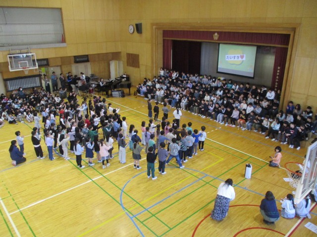 全校合唱では、先生バンドも加わり、全校児童・先生たちで盛り上がりました。