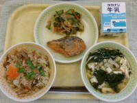 さつま芋は秋が旬の食材です。今月の給食では、さつま芋を使った献立が4回あります。今日のさつま芋の甘煮は、さつま芋の他に、りんごとパイナップルを一緒に煮て作りました。パイナップル缶の甘いシロップも使ったので、フルーティーな甘味があります。今日のさつま芋は茨城県産の「紅はるか」という種類のものを使いました。
