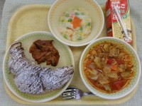 今日のゼリーは、栄養満点トマトゼリーです。リコピンという栄養がたくさん含まれています。今日のゼリーはトマトジュースとオレンジジュースを組み合わせて作っています。トマトが苦手な人も食べやすい味のゼリーです。子どもたちもよく食べていました。