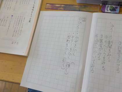 4年生の国語では、「ギターを(ひく)」、「風邪を(ひく)」のような、同じ音でも違う意味をもつ言葉について、学習をすすめていました。
