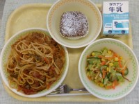 明日はいよいよ運動会本番ですね。給食では、みんなの「勝つ」にかけて「カツカレー」を作りました。カツは、ご飯にのせて、カレーと一緒に食べてください。みなさんが、毎日練習した成果が発揮できるように、給食をしっかり食べて、赤組も白組もどちらも頑張ってください。応援しています。と声かけしました。