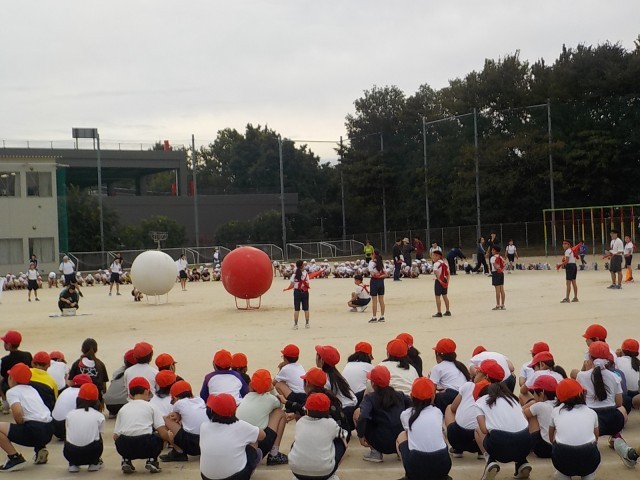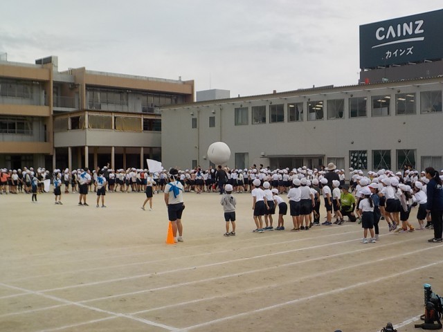 来週末の運動会に向けて、第1回の全校練習を行いました。
