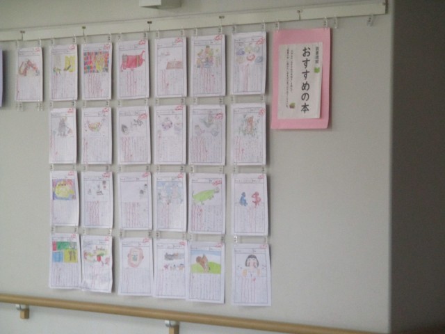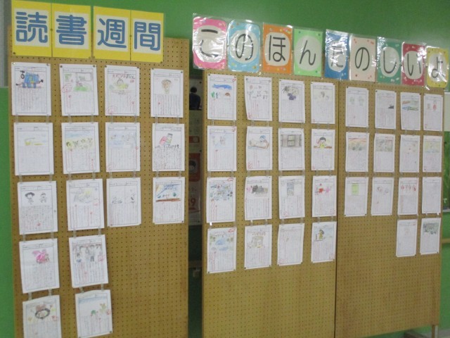 11月の読書週間で読んだ本の読書カードが校内に掲示されています。
