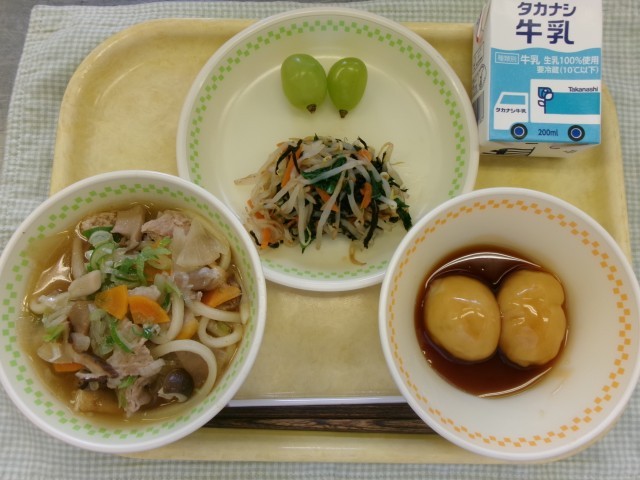 今月から10月の給食が始まります。後期最初の給食でもあります。今月は運動会にむけた練習が本格的に始まります。運動会の練習中は、普段より体力を消耗しますので、しっかり給食を食べて体調を崩さないように気を付けてください。また、こまめな水分補給と夜早く寝ることも心がけることも大切です。今日のデザートは町田のゆず果汁の入ったゆずゼリーにしました。