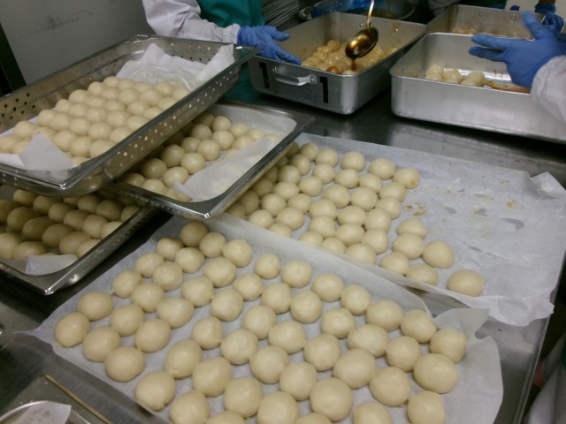 今日は十五夜にちなんだメニューです。十五夜は、別名「中秋の名月」といい、きれいな月をながめて楽しむ習慣があります。また、すすきを飾り、お団子やさといもなどをお供えし、収穫への感謝と豊作を祈るお祭りでもあります。給食では、みたらしのたれをかけたお月見団子を手作りしました。