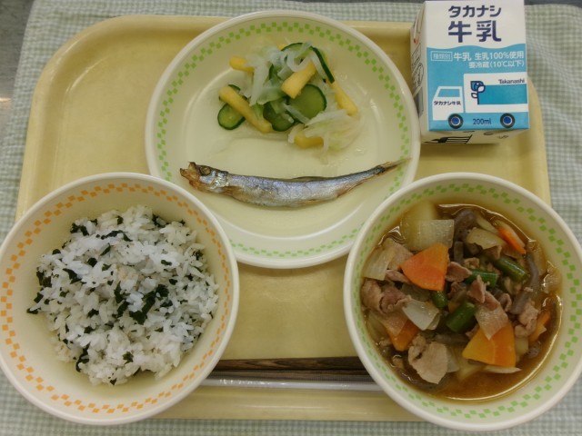 今月から10月の給食が始まります。後期最初の給食でもあります。今月は運動会にむけた練習が本格的に始まります。運動会の練習中は、普段より体力を消耗しますので、しっかり給食を食べて体調を崩さないように気を付けてください。また、こまめな水分補給と夜早く寝ることも心がけることも大切です。今日のデザートは町田のゆず果汁の入ったゆずゼリーにしました。