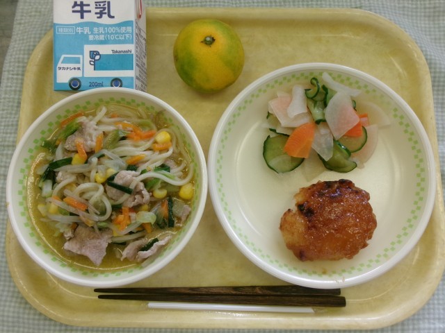 今月から10月の給食が始まります。後期最初の給食でもあります。今月は運動会にむけた練習が本格的に始まります。運動会の練習中は、普段より体力を消耗しますので、しっかり給食を食べて体調を崩さないように気を付けてください。また、こまめな水分補給と夜早く寝ることも心がけることも大切です。今日のデザートは町田のゆず果汁の入ったゆずゼリーにしました。