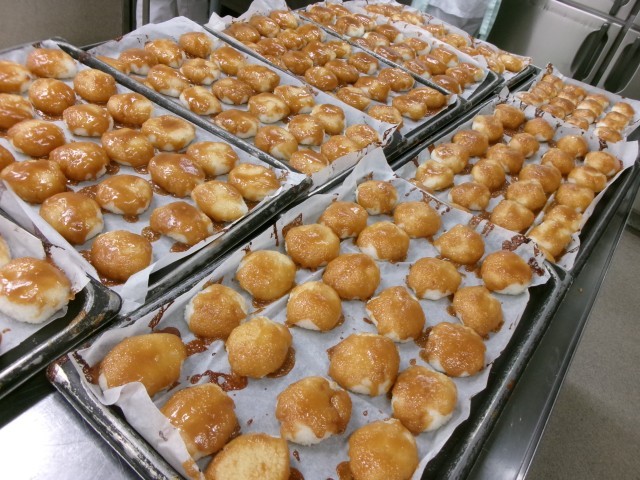 今日は、牛乳、卵、砂糖を混ぜた液の中にパンをひたして、オーブンで焼いたフレンチトーストを作りました。ほんのり甘くておいしいです。フレンチトーストは、卵や牛乳が使われているので栄養も満点です。また、さつ豆サラダは、名前の通り、さつま芋とひよこ豆が入ったサラダです。よくかんで食べてくださいと、声かけしました。