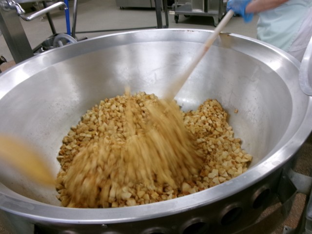 今日は、秋が旬のさんまを蒲焼きにしました。蒲焼きとは、身の長い魚を開いて、骨を取って、串にさして焼いたものに、甘辛いたれをつける魚料理のことをいいます。江戸時代から食べられている調理法のようです。給食では、お店のようにひとつひとつ串にさすことは出来ないので、開いたさんまを油で揚げて、甘辛いたれをからめました。