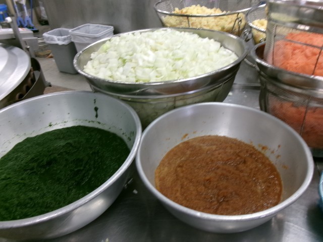 今日は、今月の食育の日にちなんで、町田産の白菜キムチを使ってみんなが大好きな焼きそばを作りました。町田産の白菜キムチは、収穫した白菜を工場に運び、洗って、カットし、キムチのたれに漬け込んで作ります。キムチに加工する白菜の量はなんと1トン以上あるそうです。出来上がった白菜キムチは、町田市の小・中学校でキムチチャーハンやキムチたくわんご飯などの献立に取り入れています。