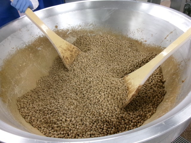 今日の給食は、節分にちなんだ献立にしました。節分とは、季節が変わる前の日のことをいいます。まだ寒いですが、2月4日は立春で暦の上では春になります。節分には、豆まきの他にも、いわしの頭をひいらぎにさして、家の入口に置くという習慣があります。給食では、揚げたいわしに甘いたれをからめた「いわしの蒲焼き」と、すりつぶした大豆を入れた「呉汁」を作りました。