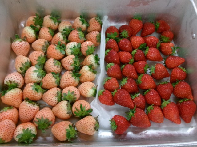 今日のデザートは和歌山県産の「はるか」という名前の果物です。見た目は、レモンのようで酸っぱそうに見えますが、酸味はほとんど感じられません。さわやかな香りと上品な甘さが特徴です。種が入っているので、種を除きながら上手に食べてください。2月は色々なオレンジが出回る時期です。オレンジの食べ比べをして、自分の好きな味を見つけてみるのも面白いですねと、声かけしました。