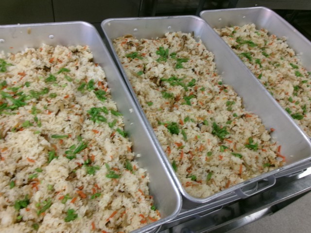 今日の給食は「ひなまつり」メニューです。ひなまつりは、女の子の元気な成長を願う行事で、ひな人形を飾ったり、ひなあられやひしもちなどのお菓子を供えたりします。給食では、ちらし寿司といちごゼリーを入れたフルーツポンチを作りました。ちらし寿司は、白米に黒米を混ぜて炊き、すし酢を混ぜた時にうっすらピンク色になるように仕上げました。女の子も男の子もしっかり食べて元気に成長してくれることを願っています。