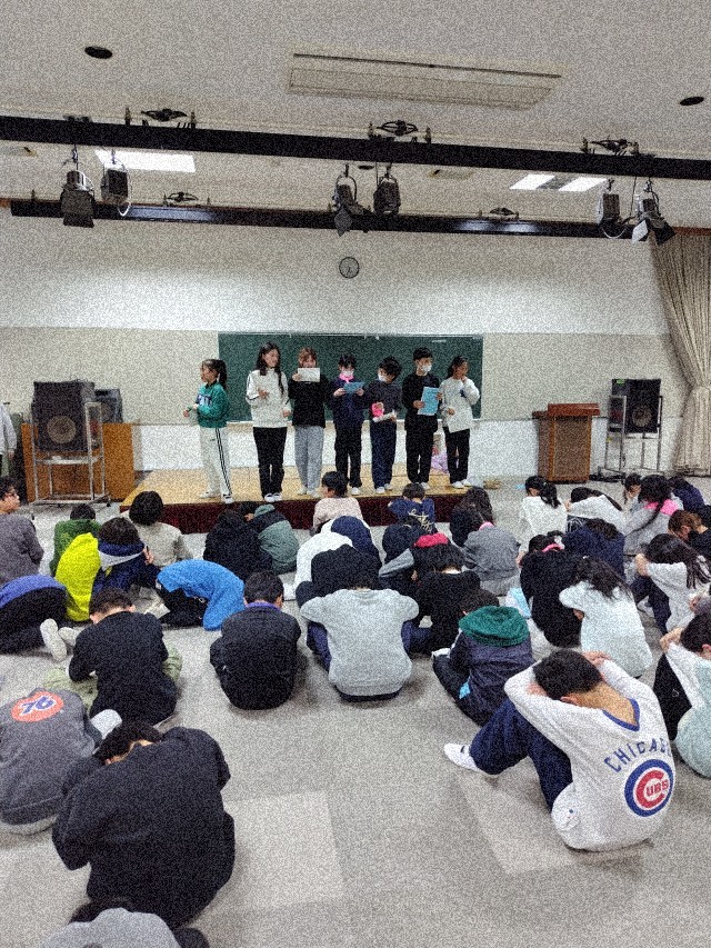 午後5時から40分ほどレクリエーションを楽しみました。係の子の元気な進行と皆で盛り上がろうとする気持ちが合わさってとても盛り上がりました。