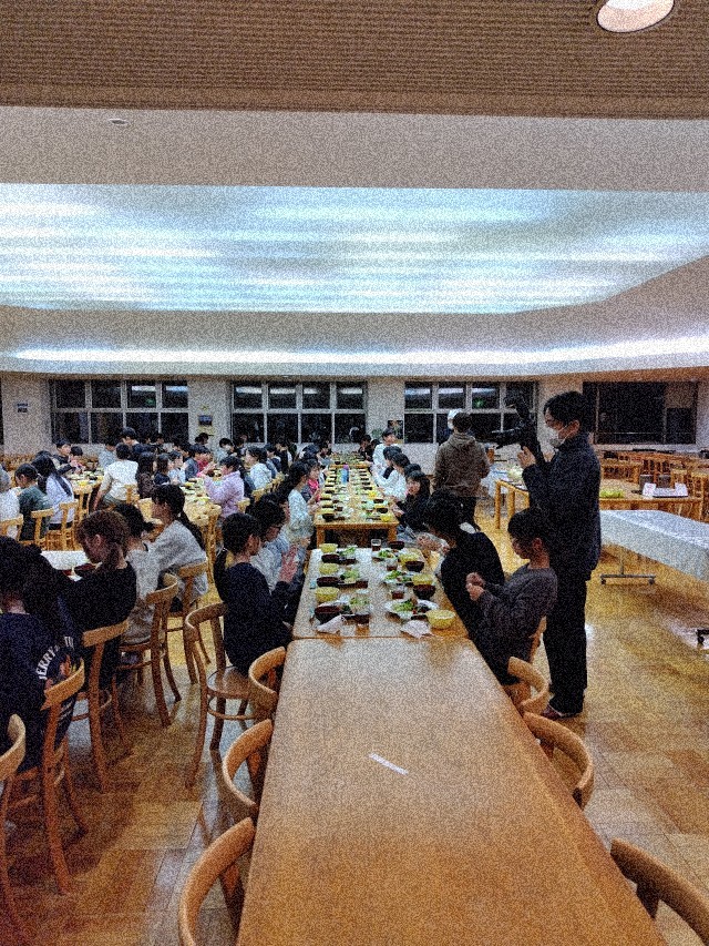 午後6時から夕食でした。食事係が手際よく準備をしたり挨拶を工夫したりして楽しくたっぷり味わっていました。