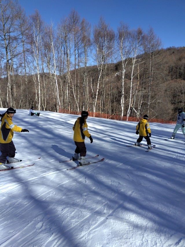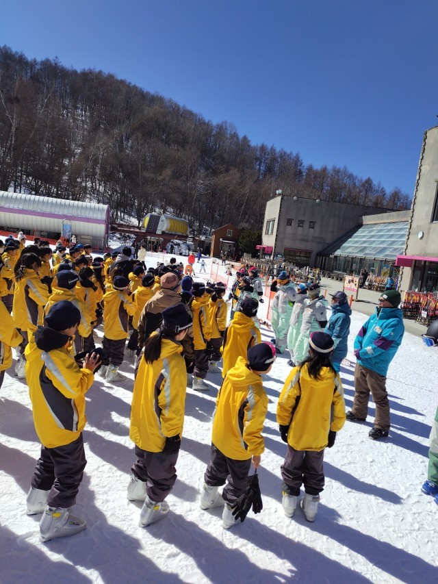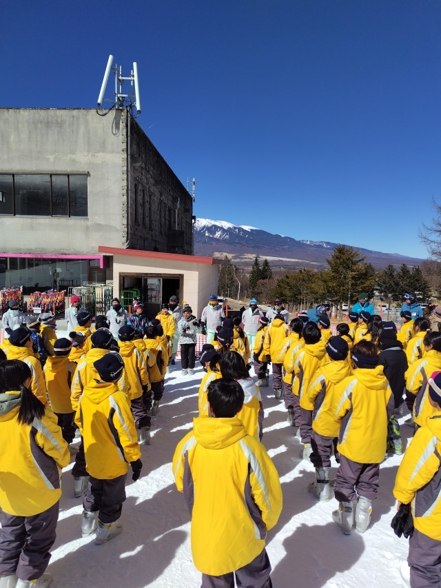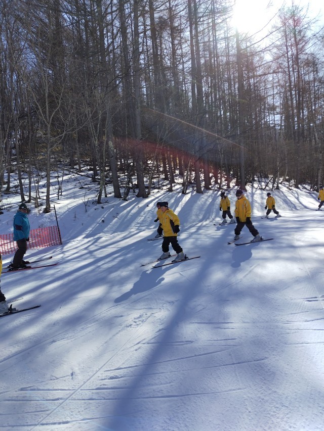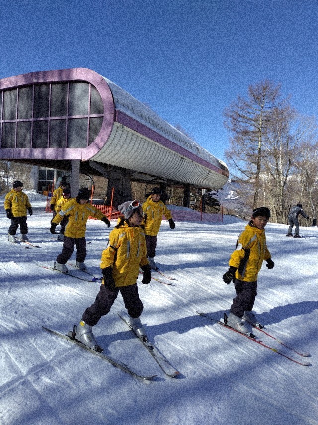 1日目のスキーレッスン後半にはリフトに乗って滑り降りるグループが多くなりました。全員がギブアップすることなくレッスンを終えることができました。楽しかったーという声がいたるところで聞こえてきました。