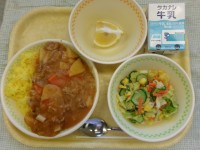 ・牛乳・ターメリックライス・ハッシュドポーク・コールスローサラダ・オレンジ(はる...