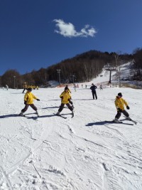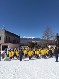 スキー開校式とスキーレッスンの様子です。開校式で挨拶などをした後、10班に分かれ...