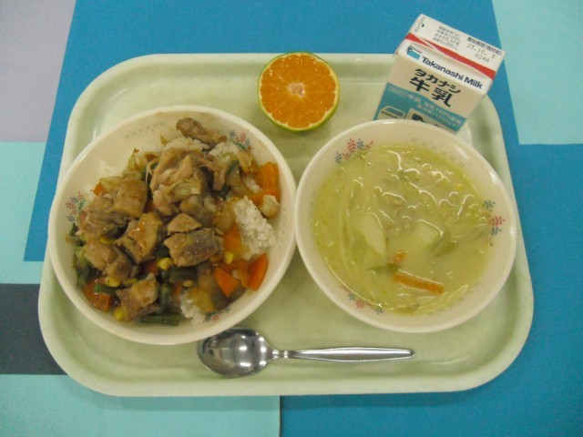 - ラクサ: ココナッツミルクのクリーミーなスープに、エビや麺などを入れたエスニックな料理で、地域によっても味わいが異なります。 今日の給食では豆乳を使いました。