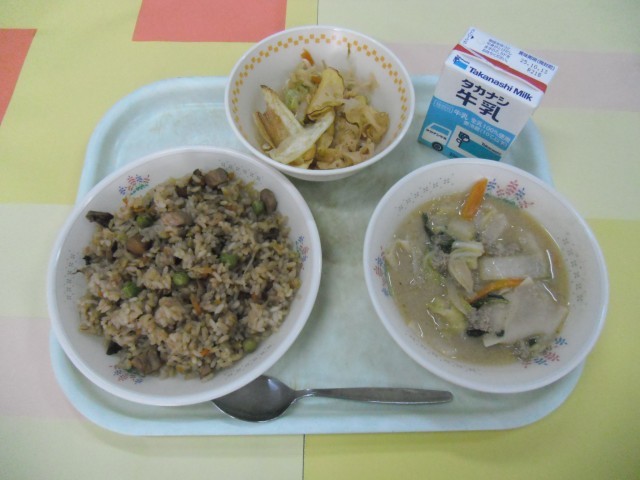 焼き豚チャーハン 揚げ野菜のサラダ ワンタンスープ