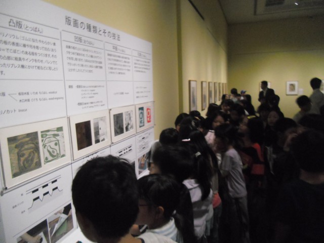 市役所を後にして、町の中心部へ向かいます。小田急線の駅を抜けて、相原や町田の歴史にもかかわりが深い「絹の道」の石碑を確認しました。続いては、相原をはじめ町田の名産品や観光地のパンフレットなどを多く扱う「ぽっぽ町田」さんも見せてもらいました。ここで情報を得た「ポケモンマンホール」も訪ねながら、次は「芹が谷公園」へ向かいます。少し肌寒いくらいでしたが、公園の広場で昼食をとりました。早く食べ終わった子たちは、広場を一生懸命走り回っていたのが印象的でした。元気ですね。最後はいよいよ「国際版画日美術館」の見学です。今回は市民展示室と常設展のエリアを見学しました。また、工房もみせてもらいました。なかなか訪れることの少ない美術館。鑑賞のマナーやルールも覚えることができました。