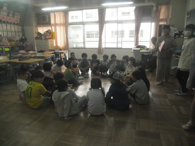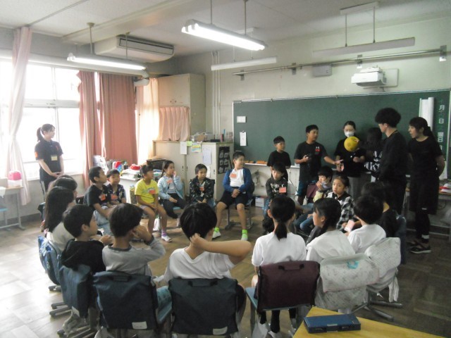 今年度も折り返し。同じグループの子たちはお互いに覚えてきましたね。また、今日は全グループ、教室での遊びでした。定番の「いす取りゲーム」や「なんでもバスケット」のほかに、クイズやレースなど楽しい遊びを6年生が準備していてくれました。