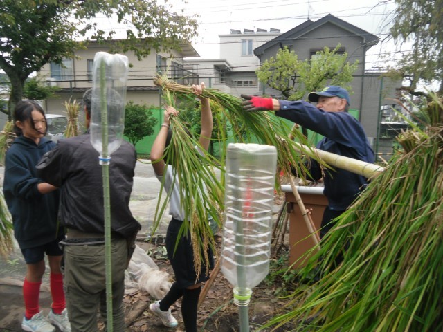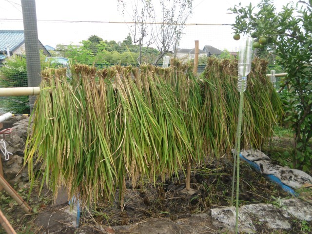 暑かった今年の夏。稲の出来はどうでしょうか。よくできて、いました。ビオトープ横の田んぼ、バケツ稲ともによくできました。