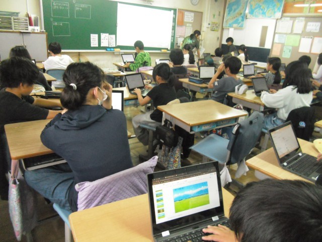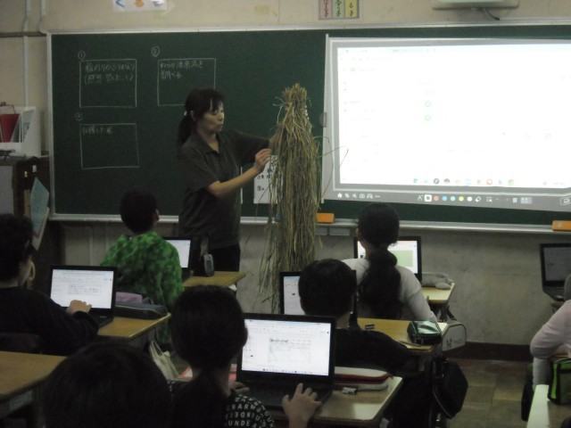 昨日、稲刈りをしたお米。さあ、今まで調べたことをまとめたり、これから「わら」も含めてどうするか、考えたりする活動をしていました。