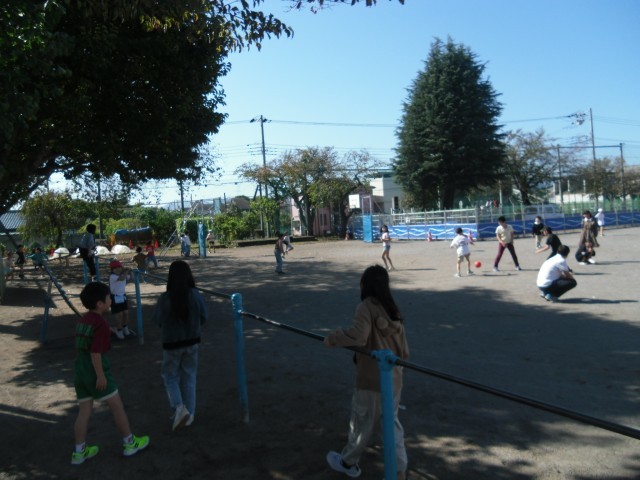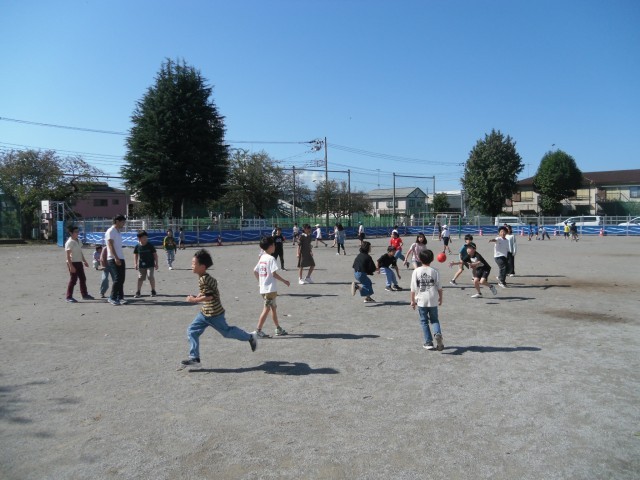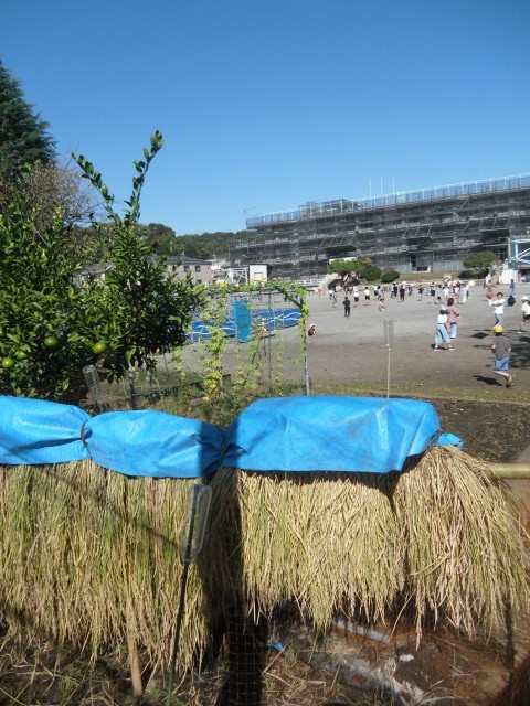 気持ちの良い青空でした。休み時間、いつも通りに子供たちは元気です。先日5年生が収穫して「はさがけ」「はせがけ」されている稲も、この天気が続くと、よく乾きそうです。