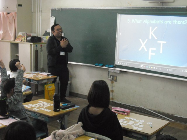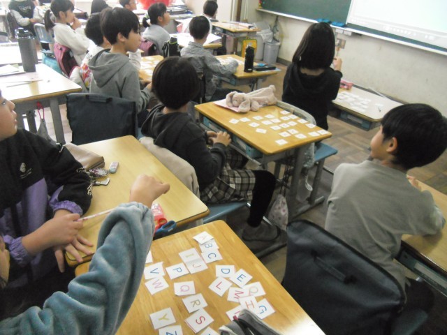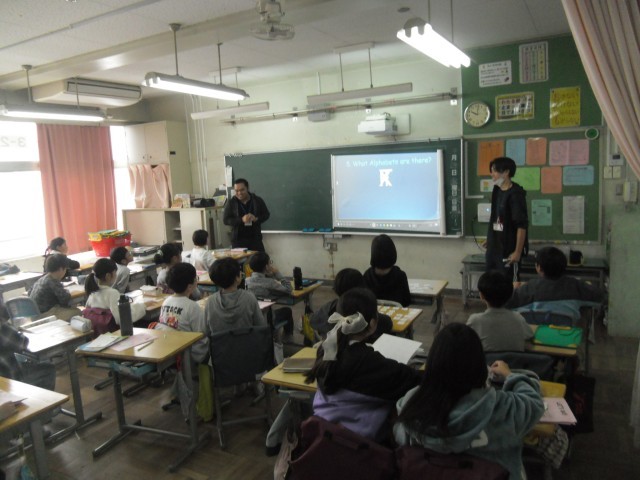 アルファベットの学習でした。クイズやゲームをしながら、ALTといっしょに楽しみながら学んでいました。