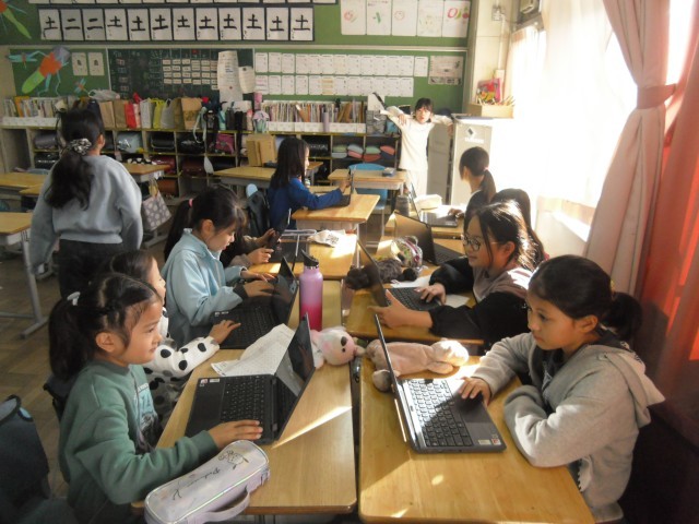 3年生は町田市や相原を紹介する発表になりそうです。今日はグループに分かれて、スライドをつくったり、台詞の練習をしたり、小道具を作ったりする時間でした。出来上がりが楽しみです。