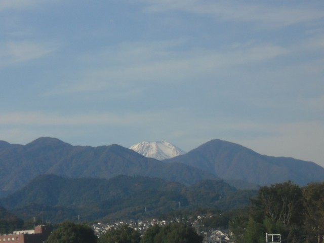 空気が澄んでいて、空も澄んでいて、気持ちの良い秋晴れです。校舎から、富士山や丹沢の山並みがとてもきれいに見えています。桜の葉も色づいて、すでに舞い始めています。葉が一枚一枚落ちていくように、校舎を半年近く覆っていた足場も、少しずつ解体・撤去されていきます。覆われていたシートが取れたら、冬に向けて、心もスッキリします。