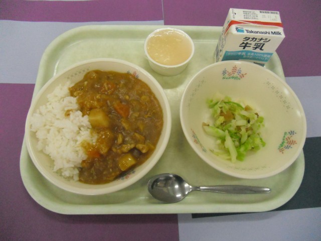 チキンカレーライス キャベツ入り福神あえ 和梨ゼリー